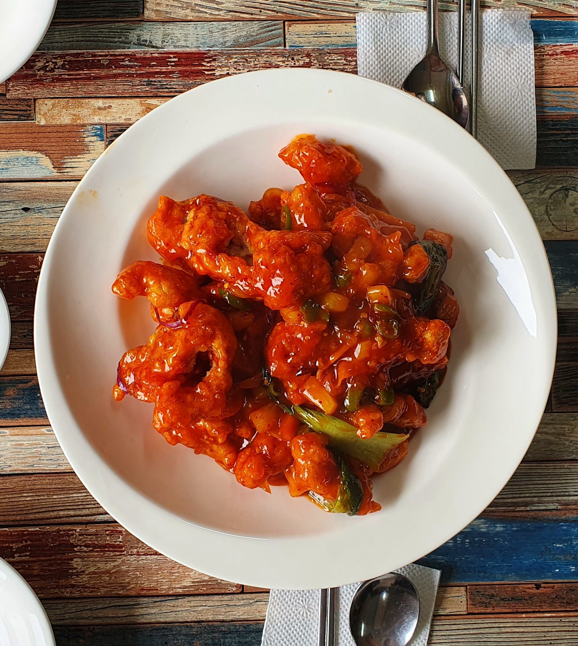 제일먼저 사천탕수육이 나왔는데 나오자 마자 바로 드시면 많이 뜨겁고 안매운듯 매운맛이 강합니다. 소스는 칠리새우소스와 느낌이 비슷하나 조금 더 매운?정도 입니다.